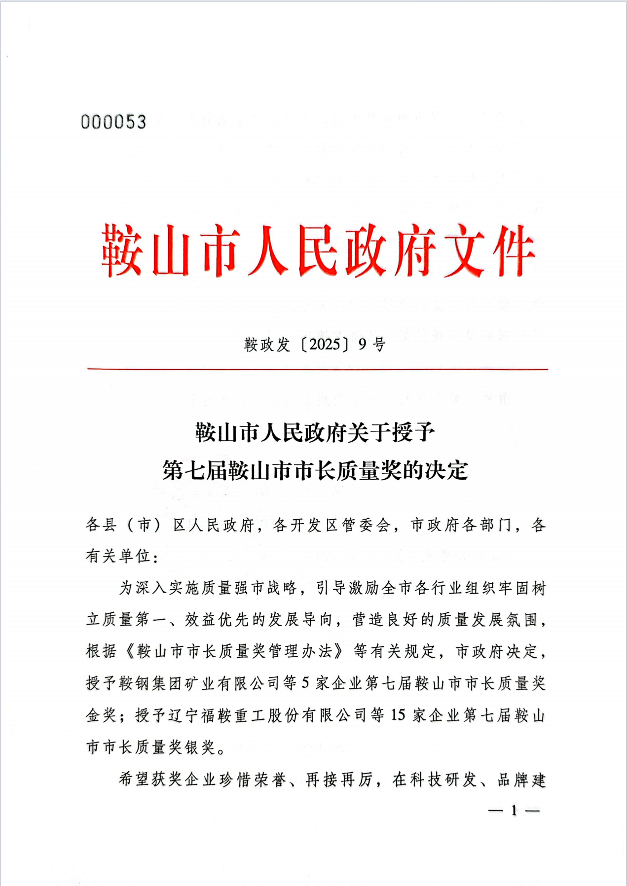 鞍山市市长质量奖以 GB/T19580 《卓越绩效评价准则》为核心评审依据,聚焦企业管理的成熟度、综合绩效表现及可持续发展能力,是对企业全链路管理能力的深度检验,更是全市质量领域的最高荣誉。此次获奖,是公司长期深耕精细化管理、深度践行卓越绩效准则、以完善管理体系驱动高质量发展的必然结果。