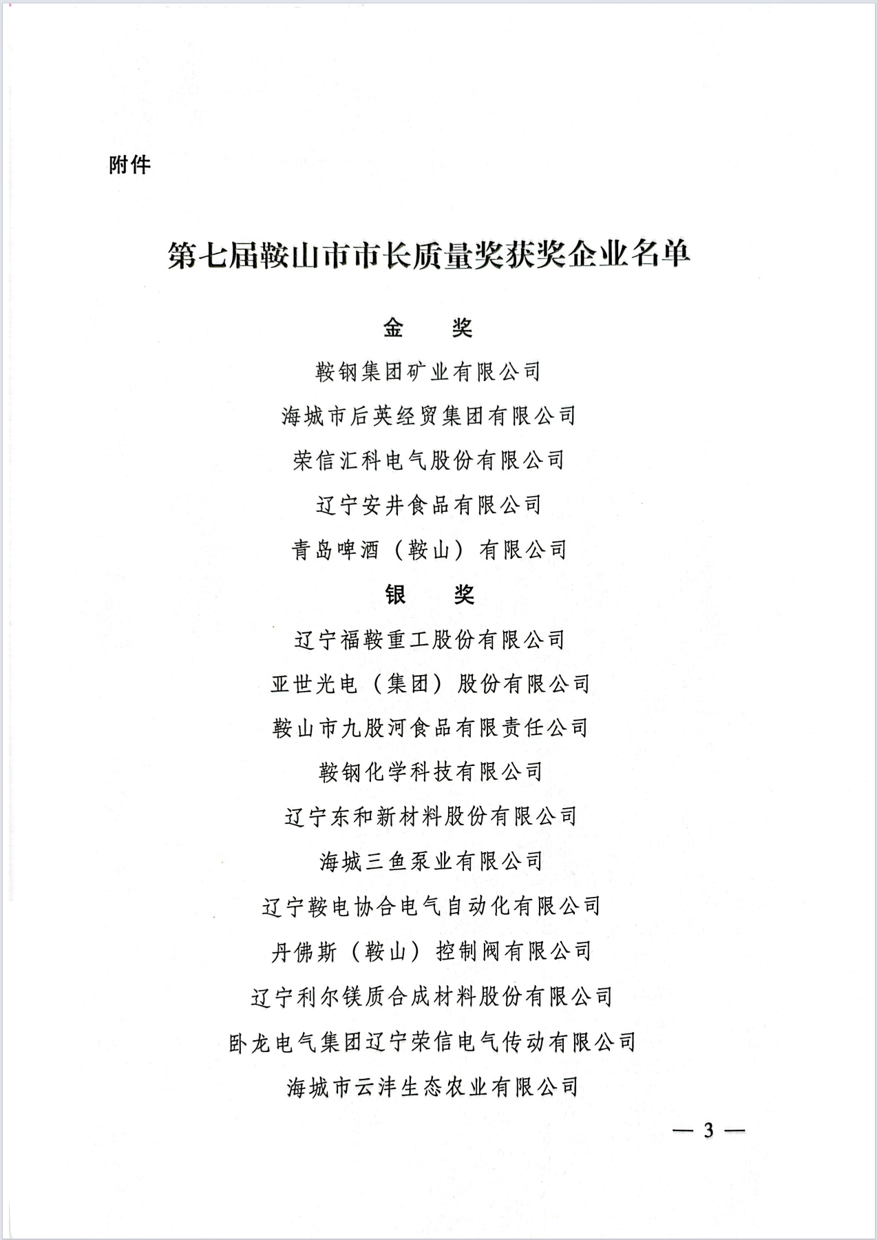 近日,鞍山市市场监督管理局公示第七届鞍山市市长质量奖获奖企业名单,鞍山市人民政府办公室同步下发《鞍山市人民政府关于授予第七届鞍山市市长质量奖的决定》,荣信汇科电气股份有限公司凭借扎实的管理功底与突出的综合绩效,成功摘得 “金奖” 殊荣,标志着公司管理水平已跻身卓越绩效模式的标杆行列,成为全市质量领域的示范企业。